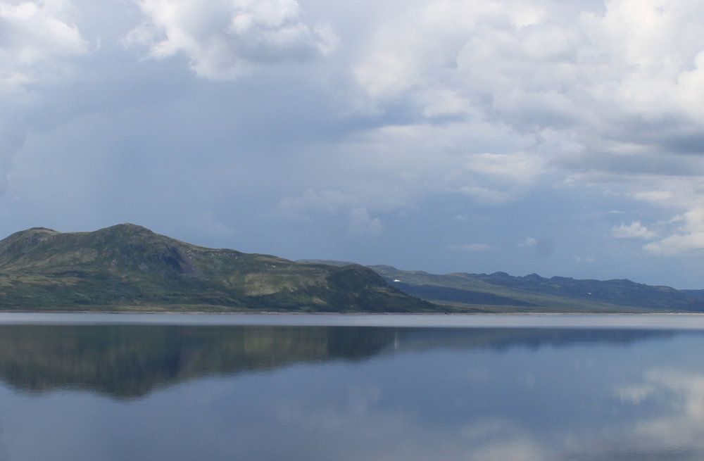 de weerspiegeling van de wolken in een bergmeer in noorwegen