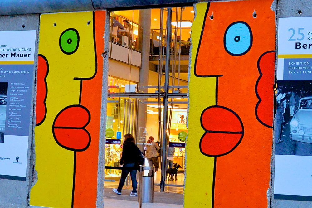 Stukje Berlijnse muur door Kunstenaars bewerkt.
