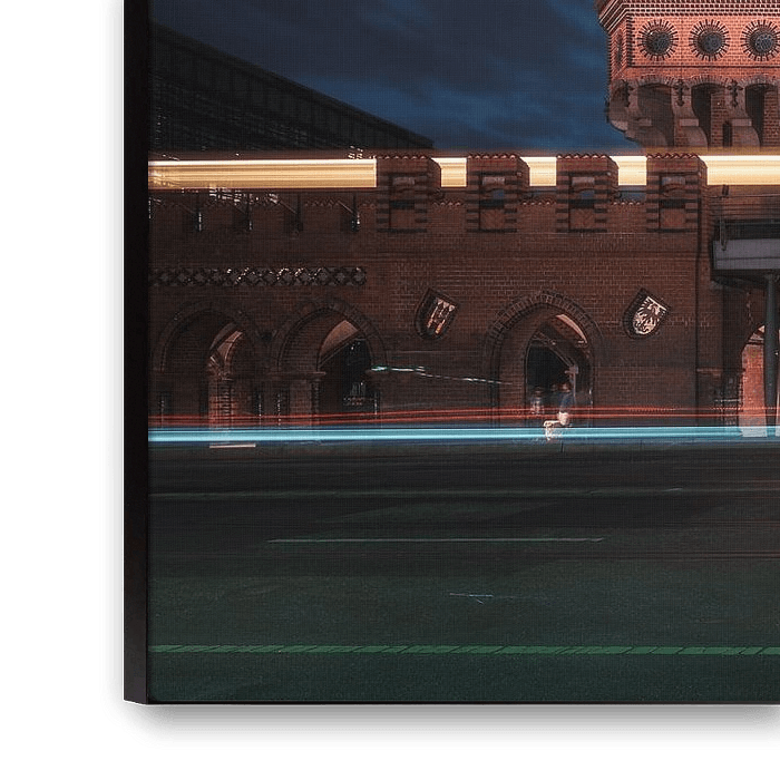 Buy the photo Berlin Oberbaumbrücke at night by Jean Claude Castor on canvas, ArtFrame, poster and wallpaper, printed on demand in high quality.