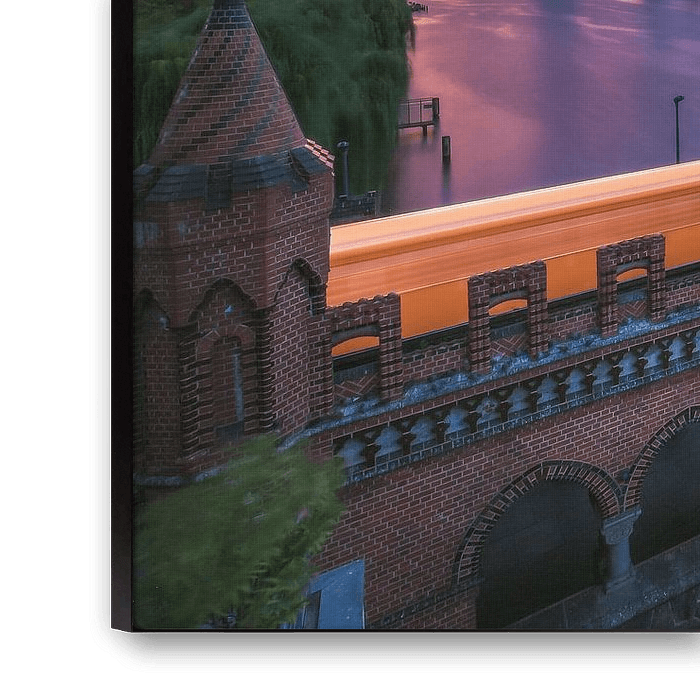 Buy the photo Berlin Oberbaumbrücke with subway at sunset by Jean Claude Castor on canvas, ArtFrame, poster and wallpaper, printed on demand in high quality.