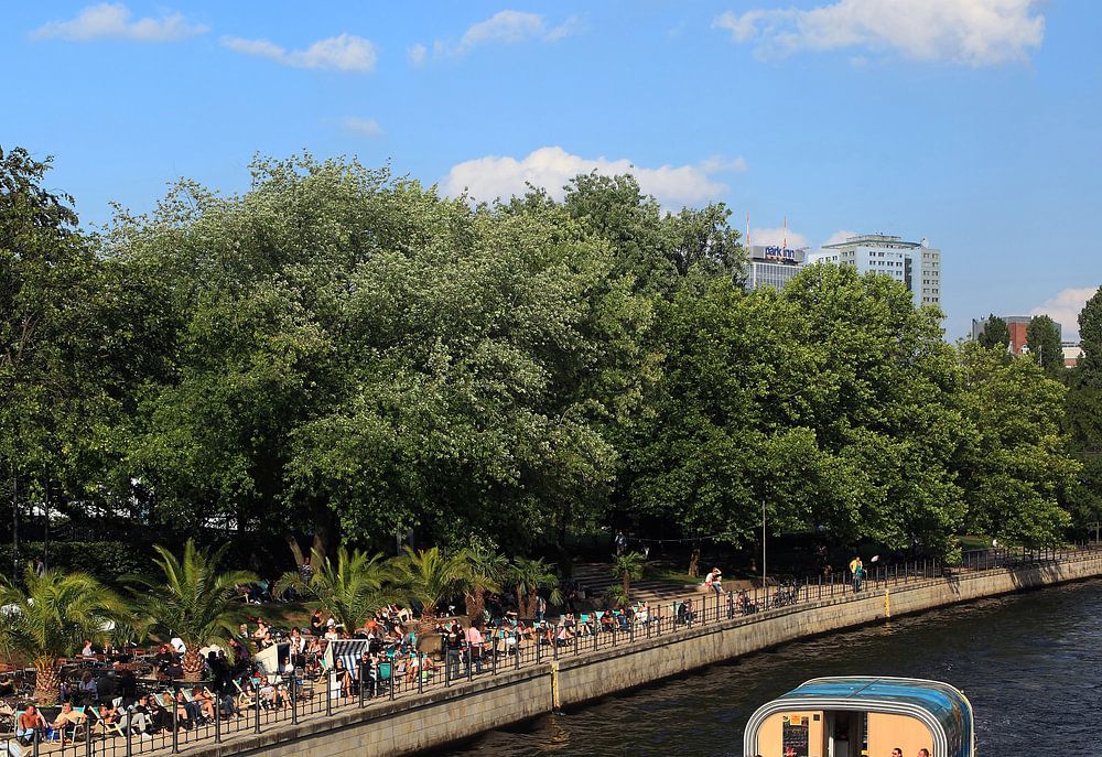 Berlin skyline with fernseturm and tourist boat by Frank Herrmann