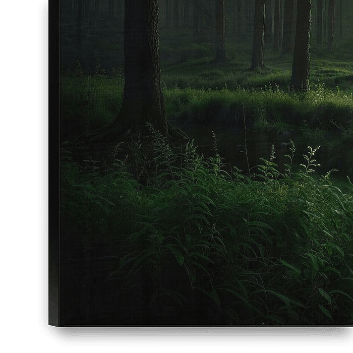 “Tussen Licht en Duisternis” is een kunstwerk dat het fascinerende moment vastlegt waarin de natuur balanceert tussen nacht en dag. Het warme licht dat door de bomen straalt, zou op het eerste gezicht zonlicht kunnen zijn, maar had net zo goed maanlicht kunnen zijn als de kleuren koeler waren geweest. Deze bijzondere belichting creëert…