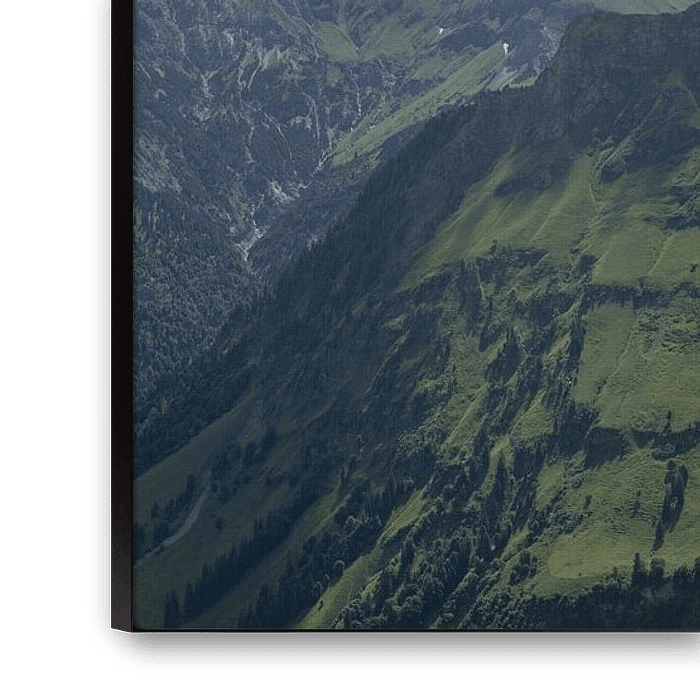 A breath of eternity lies over this panorama from the Koblat high trail on the Nebelhorn. The view unfolds majestically and sublimely over the deep green Obertal valley, where lush alpine meadows criss-cross the valley in gentle waves, as if nature itself had painted the landscape with its brush. The light of summer plays on the lush greenery, making it glow and dance in the interplay of sun and shadow.