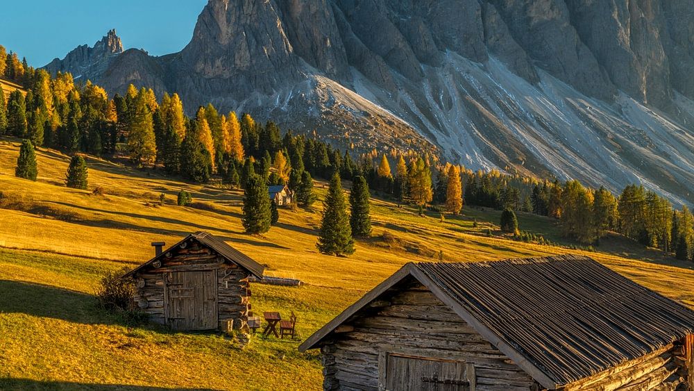 A wonderful area for hikers and landscape photographers: quiet mountain paths, wooden mountain sheds and spectacular autumn colours that give the landscape a golden glow.