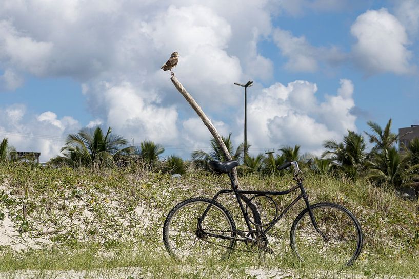 An unexpected encounter where nature and human presence quietly intersect. The owl and bicycle create a surreal yet grounded composition, blending story, symbolism, and place.