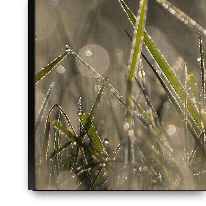 On a humid morning, the dewdrops turn into pearls. The warm light of the rising sun increases the atmosphere.