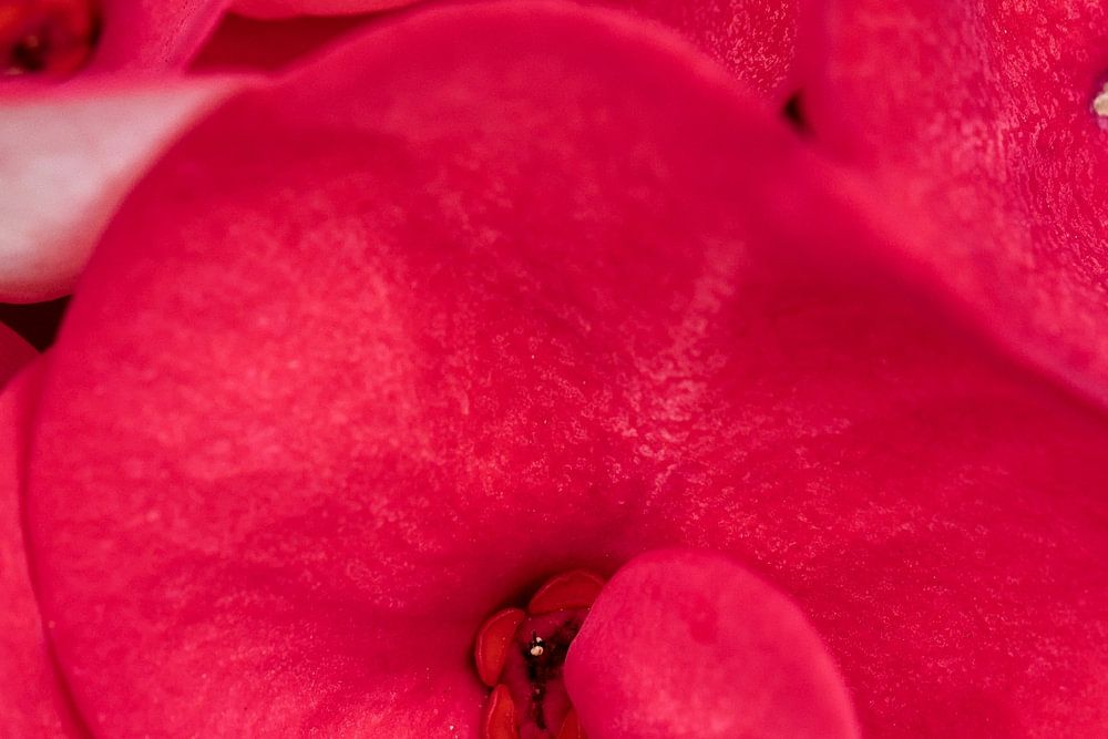 This close-up image transports us into the heart of a brilliant red flower, where each petal seems to open up like a visual caress. The soft, flowing curves of the petals are harmoniously superimposed, creating a play of shapes and volumes that irresistibly draws the eye. The vibrant, intense red hue embodies both passion and vitality, contrasting subtly with fine lighter touches on the edges. By getting so close to this flower, we discover not only its overall beauty, but also its delicate, almost velvety textures, which bear witness to the fragility and strength of the plant world. The image evokes a feeling of warmth and energy, as if the flower were radiating an inner light. This close-up sublimates the natural perfection of the plant, paying tribute both to the art of macro photography and to the extraordinary ingenuity of nature. A true ode to colour and form, where every detail becomes a work of art in its own right.