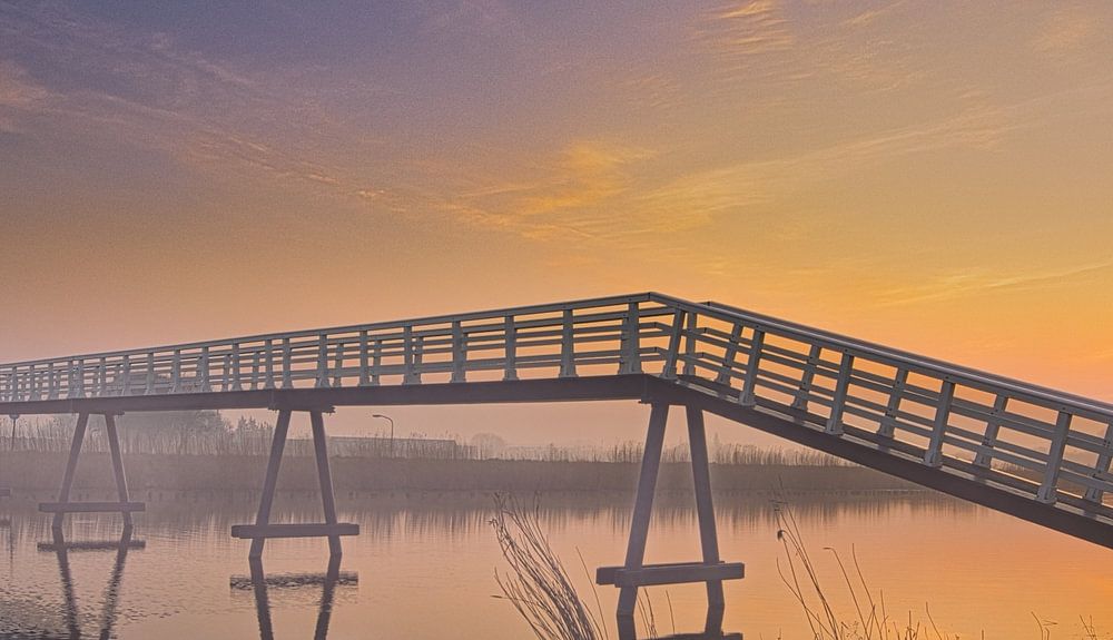 Bicycle bridge to shore dike near Avenhorn by peterheinspictures