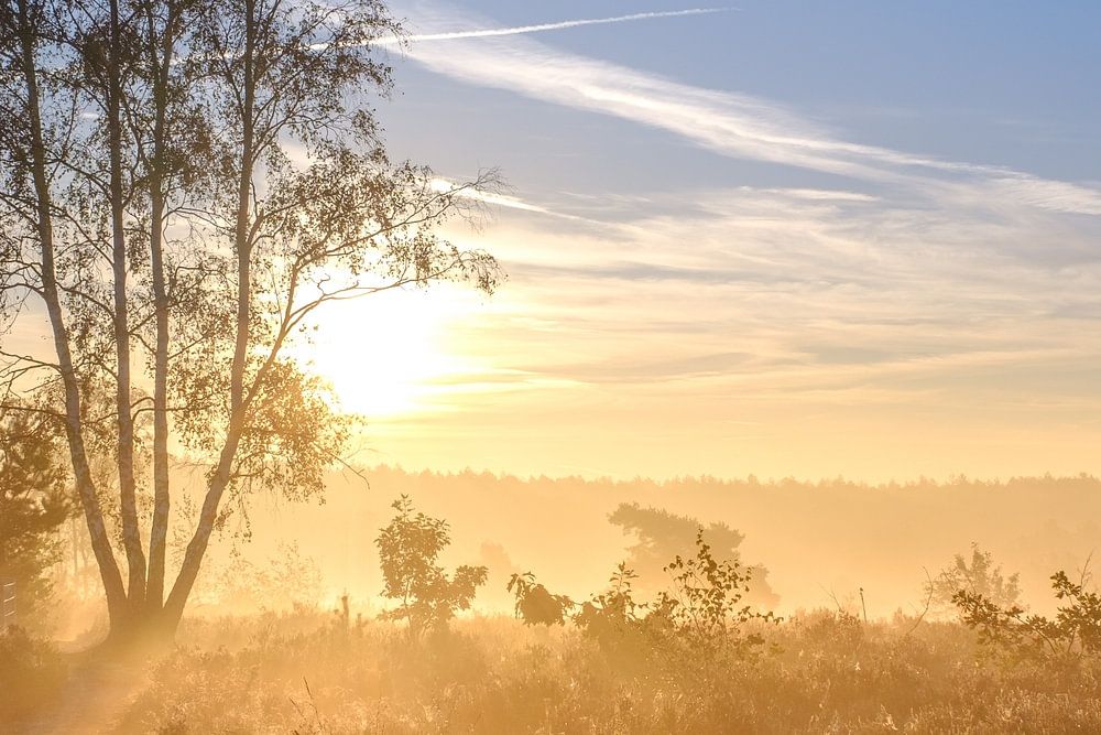 Buy this landscape artwork Birch Sunrise by Johan Vanbockryck on canvas, ArtFrame, poster and wallpaper, printed on demand in high quality.