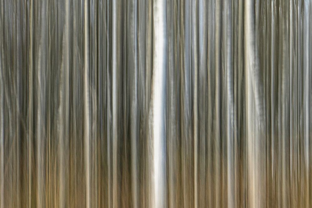Faded birch forest on the Veluwe in the Netherlands. Forest structures with white trunks. Long shutter speed. Forest in winter. White lines.