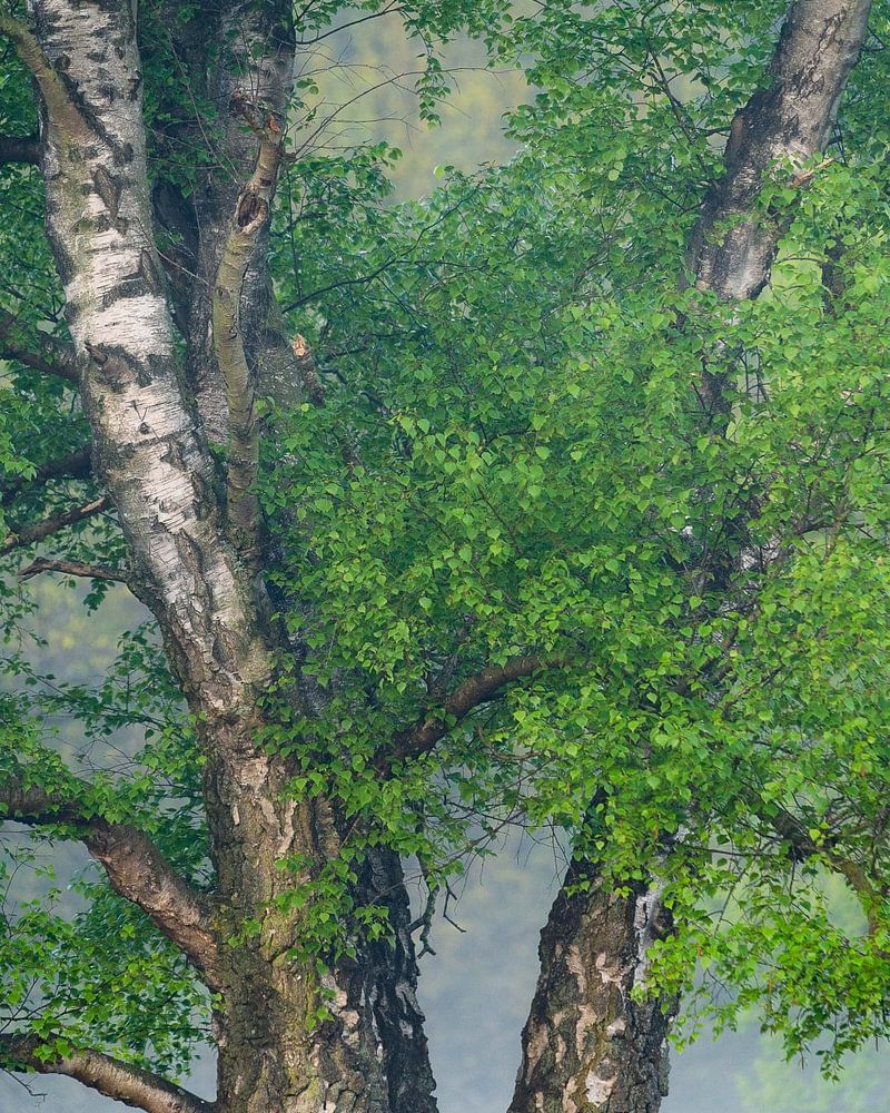 Birch in summer | Nature photography | Tree with fog by Marijn Alons