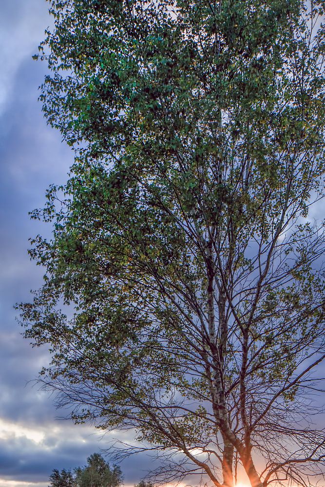 Birch tree on a moorland land lit by a sunset_1 by Tony Vingerhoets