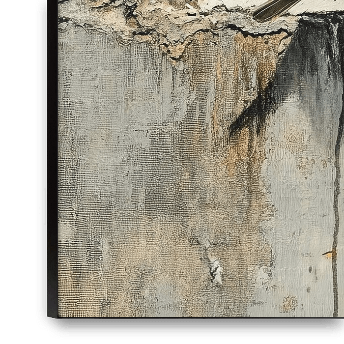 Details: bird, painting, wall, earth tones, abstract, grey, brown, white, modern, art