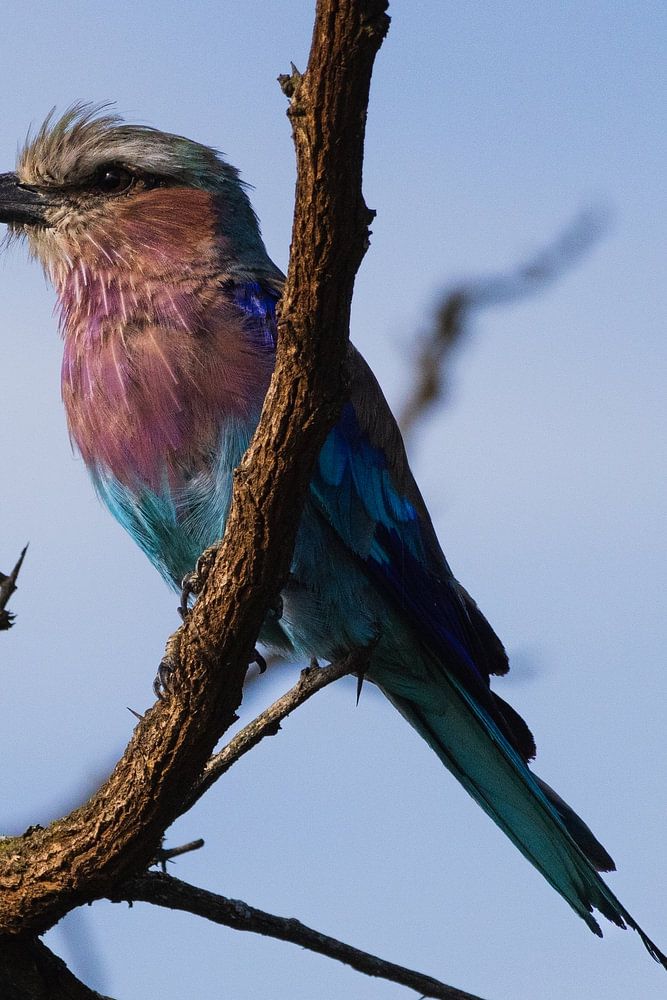 Surely these colours are phenomenal! This gorgeous purple chest, blue purple wings and blue tail. The feathers on top of his head forming a cute crest.