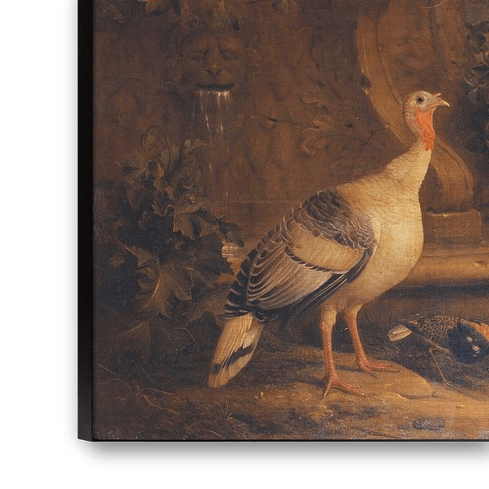 The idea of painting large-scale decorative canvases full of exotic birds in a formal garden setting was invented in Holland by Melchior de Hondecoeter (1636-95, see for example 405354). Bogdani was born in Hungary and moved to Amsterdam in 1684, where Melchior de Hondecoeter was then working and where Bogdani must have learned or at least perfected his specialism – the depiction of plants, birds and animals.