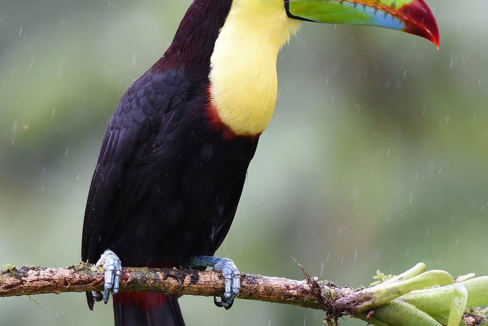 The keel-billed toucan (Ramphastos sulfuratus), also known as sulfur-breasted toucan, keel toucan, or rainbow-billed toucan, is a colorful Latin American member of the toucan family. It is the national bird of Belize. The species is found in tropical jungles from southern Mexico to Ecuador. It is an omnivorous forest bird that feeds on fruits, seeds, insects, invertebrates, lizards, snakes, and small birds and their eggs.