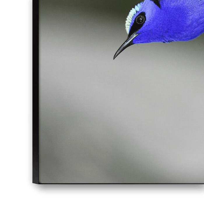 This is a species of forest edge, open woodland, and cocoa and citrus plantations. The red-legged honeycreeper is often found in small groups. It feeds on insects and some seeds, fruit and nectar.