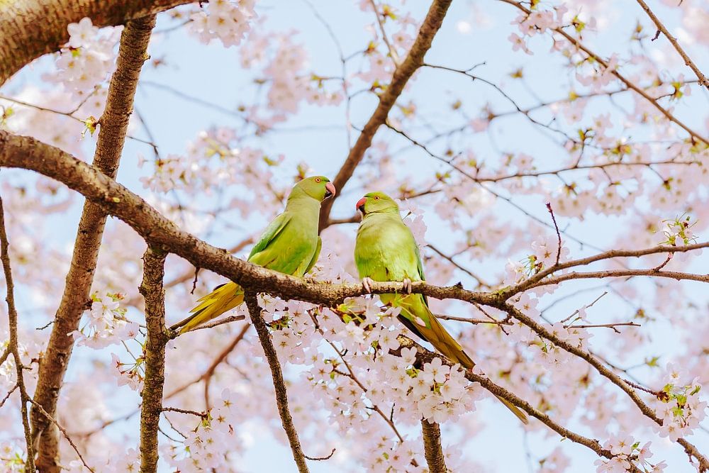 Birds enjoying the blossom together