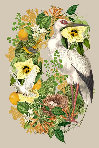 Buy this bird art Birth in Green Collage by Behindthegray on canvas, ArtFrame, poster and wallpaper, printed on demand in high quality.