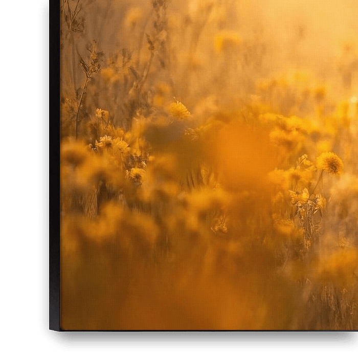 In the soft light of dusk, the majestic bison rises out of a golden sea of flowers. Its imposing horns and powerful body radiate strength, while a mysterious haze envelops the scene. With a determined gaze, it seems to penetrate the horizon as if it wants to fathom the secrets of the vastness.