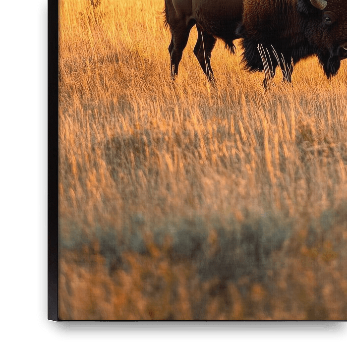 Buy this landscape artwork Bison on the prairie by Poster Art Shop on canvas, ArtFrame, poster and wallpaper, printed on demand in high quality.