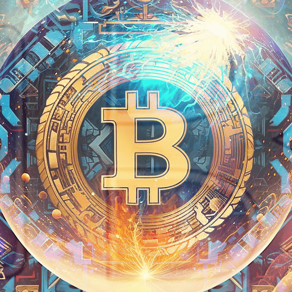 This masterpiece is a tribute to the world of cryptocurrencies, created especially for Bitcoin enthusiasts and holders. The mesmerizing play of rings and the presence of the Bitcoin logo in the middle of this artistic mandala reflect the importance and influence of digital currency on the universe of finance.