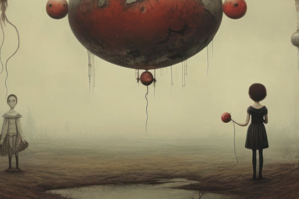 About "Bizarre alien landscape or planet with strange monsters and people"
