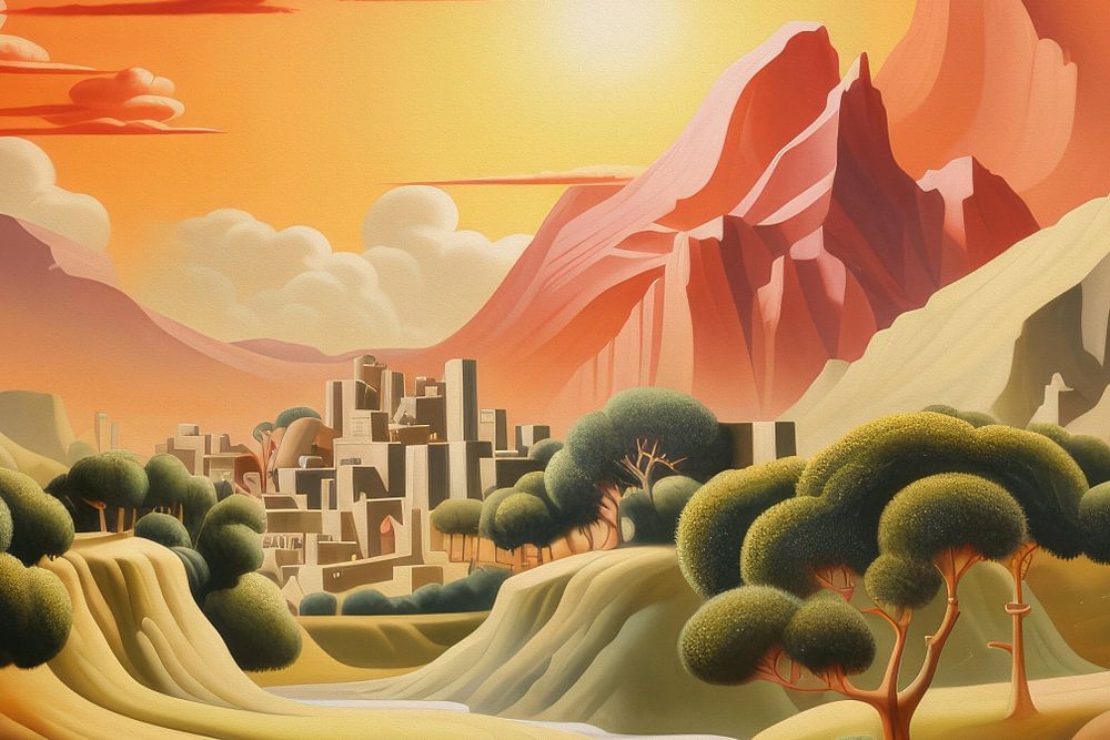 About "Bizarre surreal art deco landscape of an alien planet"