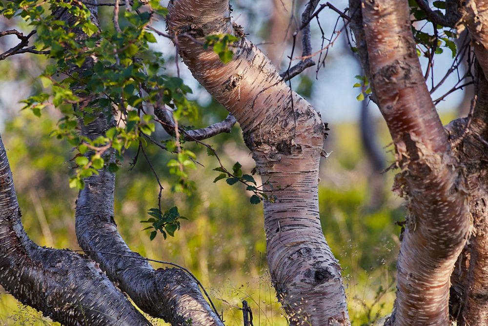 Berk op een dag lopen in Nationaal Park Stabbursdalen. Op deze plek zie je veel berken met opvallend veel kronkels! Volgens de lokale mensen komt dat door de ruige weersomstandigheden.