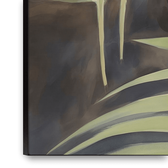 A digital painting of an elegant black panther surrounded by green leaves. The work gives a dreamy and rustic look to your interior!