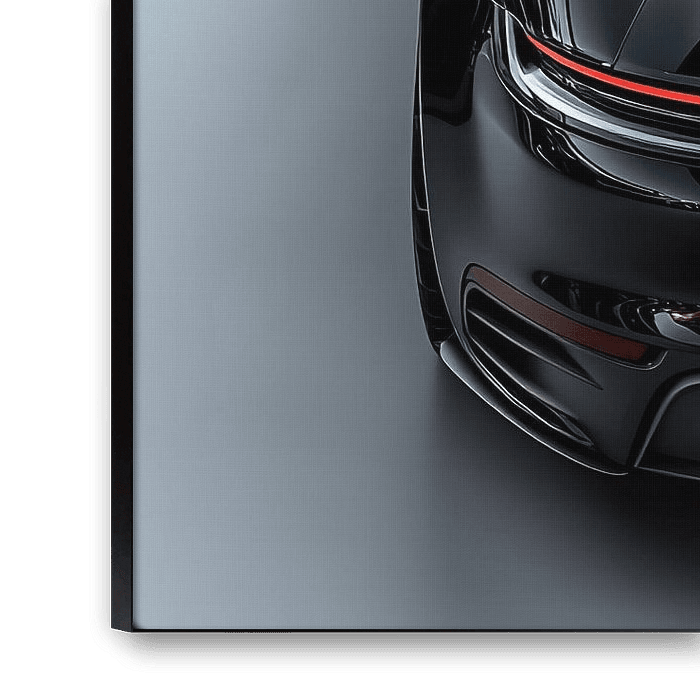 An impressive poster of a black Porsche 911 GT3, sleek and glossy in bright daylight. It focuses on the car's elegant lines and powerful details, with a slight close-up highlighting the beauty of its aerodynamic shapes. Minimalist background lets the GT3 shine fully, a pure ode to speed and design.