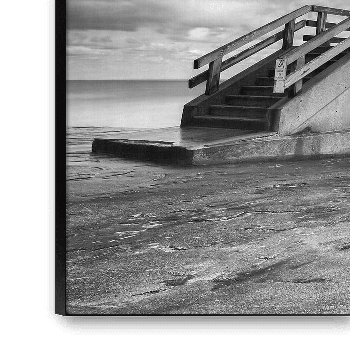 Buy this still life Black & White pier in de zee bij Omaha Beach Normandië by Silvia Thiel on canvas, ArtFrame, poster and wallpaper, printed on demand in high quality