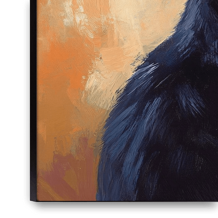 This atmospheric image shows two cats in an intimate moment, with a black and a striped cat appearing to greet each other lovingly. The warm tones and impressionistic style create a timeless and soothing look, perfect for the home. This design exudes peace, connection and elegance and is ideal for adding a touch of natural beauty and…
