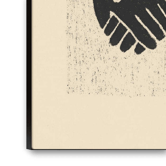 A minimalist black and white artwork shows two hands in a firm handshake. The left hand is pointing upwards, the right hand downwards - both in strong black on a light beige background. The fine, grainy background lends the motif a subtle texture and depth. The clear composition and strong contrast place the gesture of the handshake at the centre - a symbol of connection, trust and balance. Simple, powerful and timeless in its expressiveness.