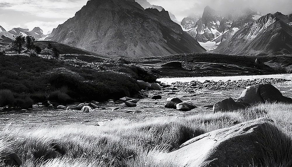Black and white photography with landscape and mountains