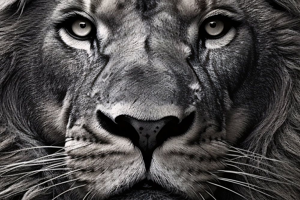 Buy this digital art artwork Black-and-white portrait of a lion by Art & Soul Creations as a reproduction on canvas, ArtFrame, poster and wallpaper, printed on demand in high quality.