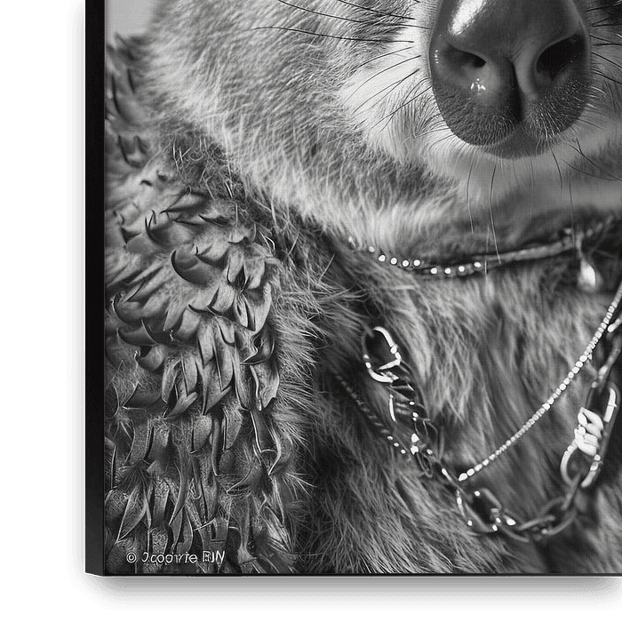 A wombat in a stylish outfit and accessories poses for a black and white portrait. Perfect for creative and humorous projects.