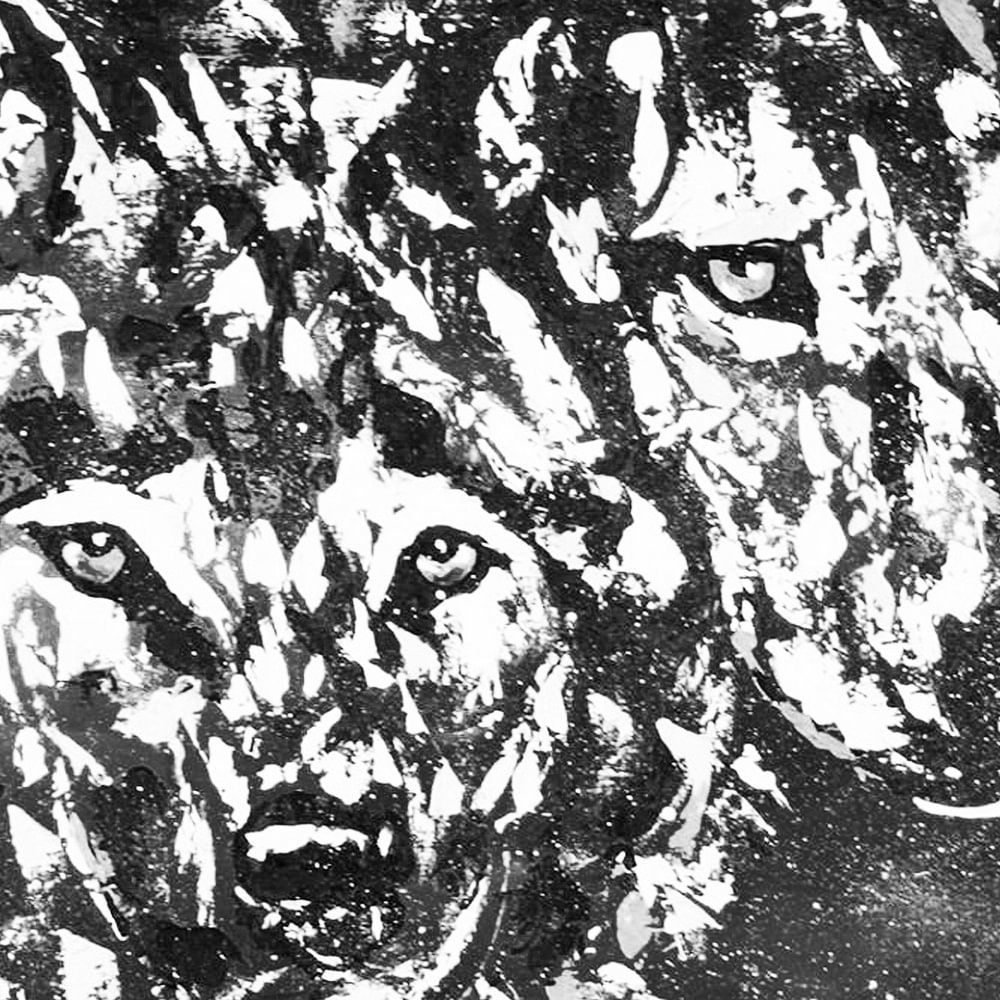 Black and white winter wolf