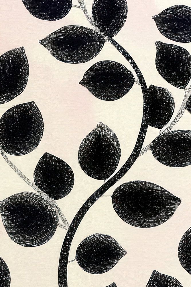 The clean lines and use of negative space give the work a contemporary feel, making it suitable for modern interiors where minimalism and simplicity are valued. The pink background creates a soft, warm atmosphere, while the black leaves give the work a powerful and graphic element that is not too overwhelming. The whole piece exudes balance and harmony and can serve as a subtle yet stylish statement on the wall.