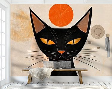 A mysterious look that misses nothing - the black cat with glowing, orange-coloured eyes radiates a special aura. A radiant sun hovers above it, setting warm accents. This artistic motif adds an elegant yet mystical touch to any living room, perfect for cat lovers and fans of the unusual.