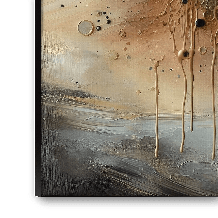 Experience the power and mystery of this abstract work, which centres on a black hole surrounded by dynamic oil paint shapes that suggest distorted space and energy. The deep, dark core draws your gaze inwards, while the surrounding colours and shapes depict the immense power and movement of the black hole. This work captures the essence of the unknown and infinite, bringing a dramatic, cosmic atmosphere to any space.