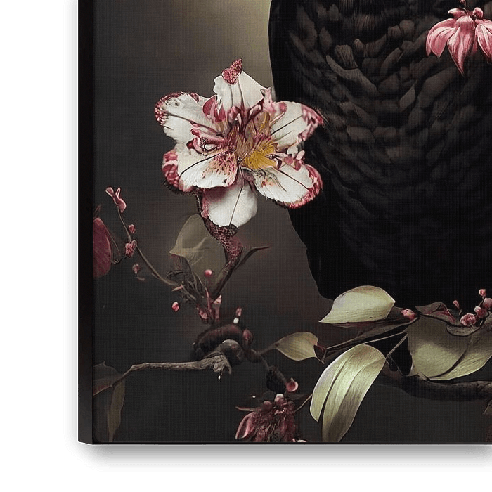 Buy this flower art Black owl with flowers by haroulita on canvas, ArtFrame, poster and wallpaper, printed on demand in high quality.