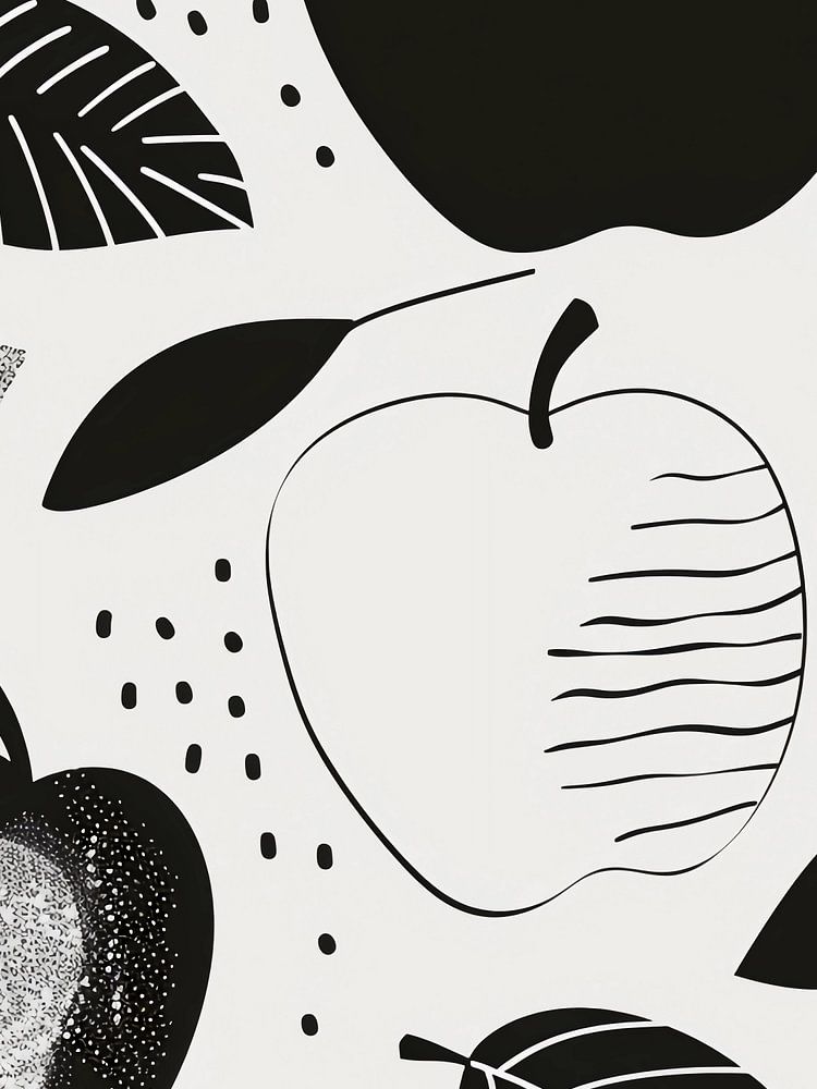 Buy this modern artwork Black white apples by haroulita on canvas, ArtFrame, poster and wallpaper, printed on demand in high quality.