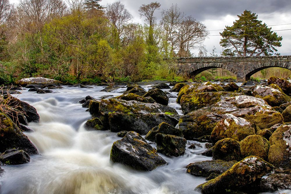 Cloudy afternoon in Ireland at the Blackstones Bridge, part of the ring of Kerry, near the Lakes of Killarney.