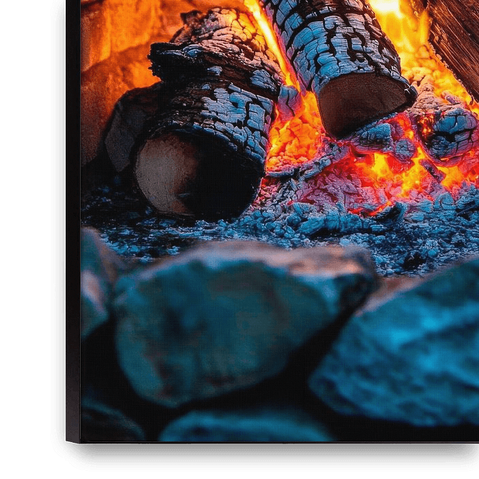 A dancing fire unfolds amidst rustic stones, while living flames embrace the darkness. The crackling logs radiate a warm glow that bathes the surroundings in cosy light. Swirls of sparks testify to vitality, while the glowing ashes quietly tell stories of nights gone by. Inviting and hypnotising, this place captivates the senses.