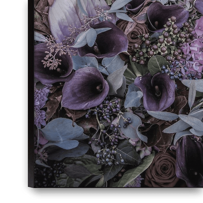 combinatie van verschillende bloemen, bouquet. Donkere kleuren, paars, rood, groen, lila, pink, rose.