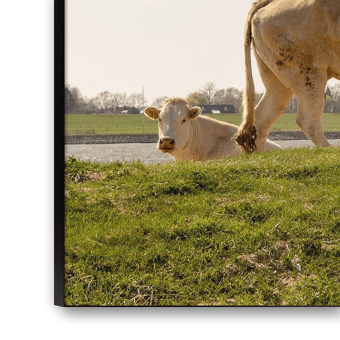 Blonde cows enjoying the sunshine in the floodplains of aspic on the Rhine.