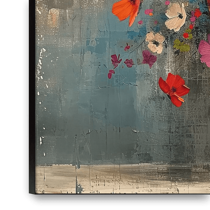 Details: still life, flowers, vase, colourful, canvas, modern, interior, decoration, art, painting