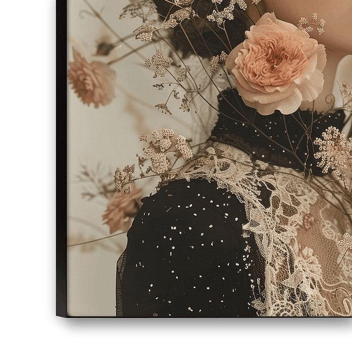 Bloom baby, bloom! Modern portrait of a girl buried under a sea of flowers. Pastel colours. A special eye-catcher!