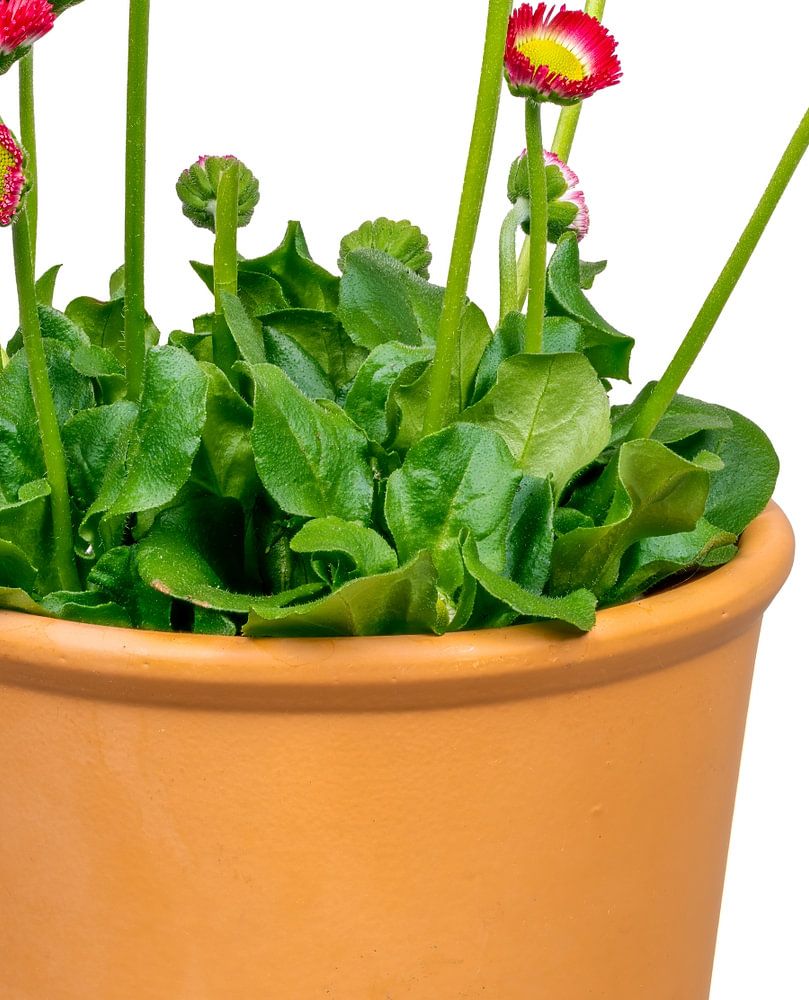 Buy this flower art Blooming Bellis Flower on White Background by ManfredFotos on canvas, ArtFrame, poster and wallpaper, printed on demand in high quality.